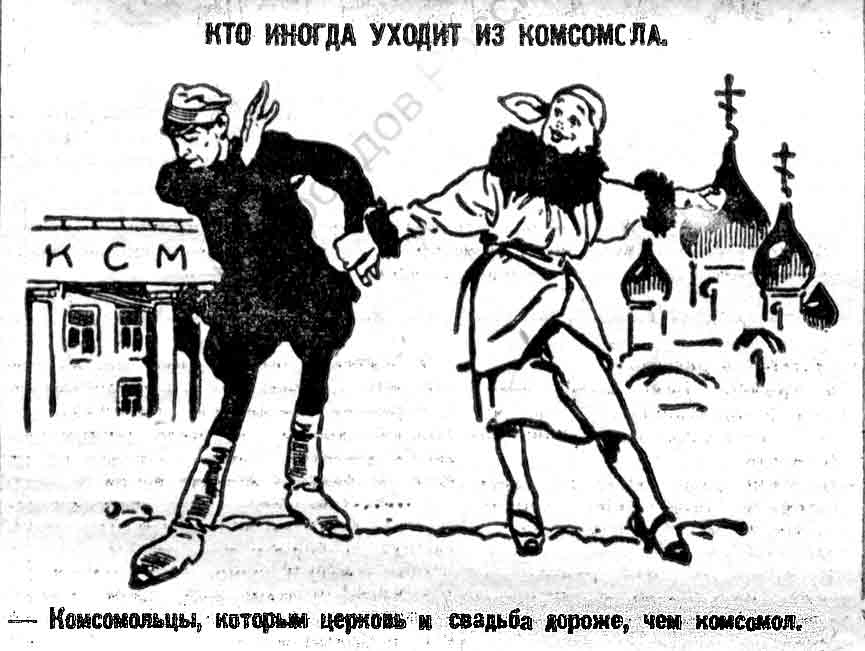 Комсомолец Куташев подал заявление с просьбой разрешить ему венчаться в церкви. В ячейке ему разъясняли неправильность его желания, но он все-таки, очевидно, перепугавшись адских мук, женился церковным браком.