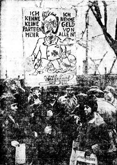 21 (08) марта 1926 года![]() ПОЗАБЫТАЯ ВЫВЕСКА.По ул. 5 Армии, № 34 в инвалидной мастерской слепых Иргубсобеса, все еще висит старая вывеска «Училище для слепых детей имени Петра Родионовича Кравца», известного богача старого времени. Давно пора заменить ее новой.Ник. ![]() В Брюсселе, в Национальном Банке какая-то женщина настолько громко и резко разговаривала с кассиром, что один из служителей заподозрил нападение и дал сигнал об опасности. В результате чего в банке произошла паника. ![]() Паровозов больше, чем до войны.ЛЕНИНГРАД, 20 марта (По телеф. от наш. корр.). К 20 марта железнодорожные кладбища Ленинградского узла были ликвидированы почти на 100 проц. Все дороги узла имеют сейчас более 1.300 паровозов и около 45.000 вагонов. Севеверо-западные железные дороги ликвидировали кладбища товарных вагонов и паровозов на 100 проц. Общее число исправных паровозов и вагонов сейчас на 25 проц. превысило довоенное.Со всех концов СССР.Улов тюленей в Белом море в 1925 г. дал 97.190 голов, береговой промысел 20.000 голов. В довоенное время ежегодный улов тюленей не превышал 2.000 голов. (Наш корр.).![]() Революционные праздники в деревне.В деревне Низовелице, Устьрецкой вол., Кадниковского уезда, в день низвержения самодержавия 12 марта силами учеников местной школы поставлен спектакль. На спектакль приходили все крестьяне деревни. В будущем предполагается проводить так все революционные праздники.Н. Парфенов ![]() Убийцы Николая II тоже требуют пенсии.МОСКВА, 19 марта (Корр. „Последних Известий“). Постановление совнаркома о назначении пенсии убийцам императора Александра II побудило убийц его внука, императора Николая II и его семьи — Юровского и других участников кровавого злодеяния в Екатеринбурге — обратиться в совнарком с ходатайством о назначении им пенсии „за свои заслуги перед сов. Властью“.![]() Конец „Парижского Вестника“„Частное издание парижского полпредства “Парижский Вестник” с 1 апреля прекращает свое существование. Об этом уже уведомлены служащие и сотрудники. Проект выпускать новый орган вместо закрывающегося “П. Вестн.” не получил одобрения Раковского. “Пар. Вестник” закрывается ввиду полной его бездарности. Раковский находит, что этот орган только компрометировал советскую власть. Предполагается особое внимание уделять пропаганде на французском языке. Во главе издающейся в Париже “Ви Экономик” становится небезызвестный Ренэ Маршан, вернувшийся недавно из Москвы.![]() «ТОВАРИЩ» ВНОВЬ ОТПРАВЛЯЕТСЯ В КРУГОСВЕТНОЕ ПЛАВАНИЕ.В Ленинград прибыли слушатели морского техникума, совершившие плавание на паруснике «Товарищ». Как известно, «Товарищ» несколько времени назад потерпел аварию у берегов Шотландии и был приведен на буксире в Мурманск. Сейчас весь руководящий состав парусника обновлен, назначен новый капитан. Вопрос о дальнейшем плавании «Товарища» разрешается в Цуморе. Возможно, что уже в конце апреля парусник выйдет в Аргентину.![]() «Ни гроша князьям!»Кампания германской компартии за всенародное голосование вопроса о возмещении б. князьям увенчалась блестящим успехом. 12 милл. избирателей подписали петицию, требующую всенародного голосования. На снимке изображен один из моментов агитации за подписание петиции в пригороде Берлина. На плакате — фигура б. кайзера Вильгельма, который «не признает никаких партий и берет деньгами ото всех».![]() ![](